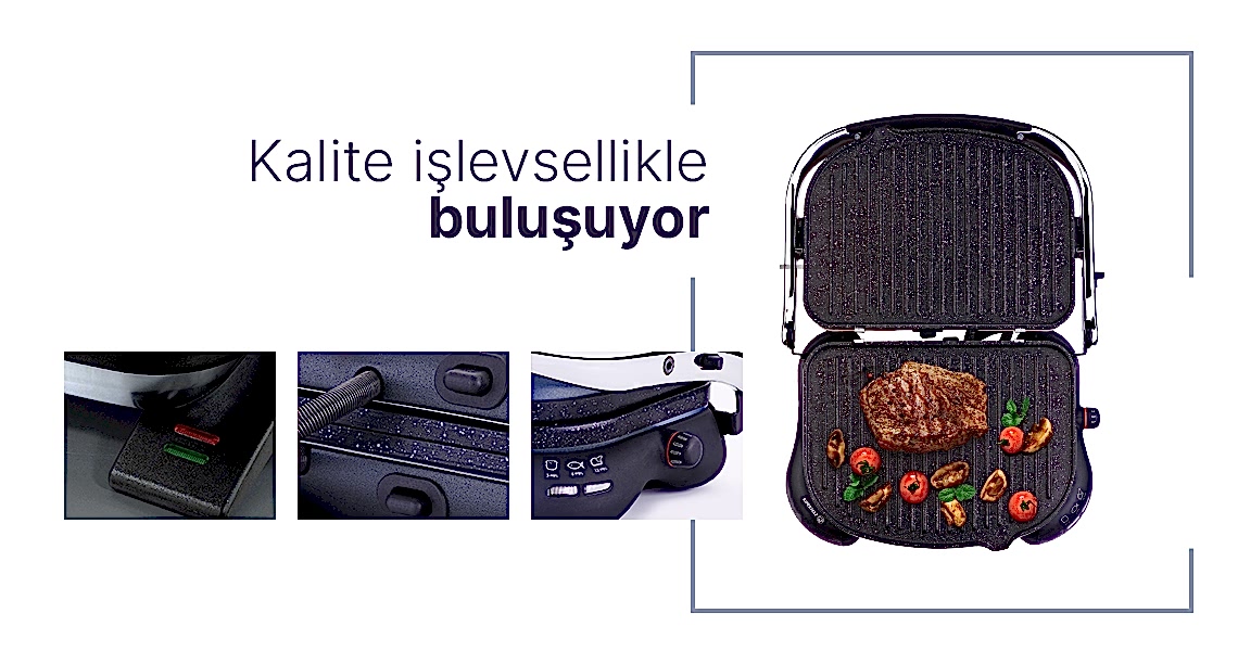 Korkmaz Castron ile ister leziz tostlar, isterseniz ızgara özelliğiyle et ya da balık hazırlamak mümkün. Kolay bastırma özelliği ile yorulmadan yiyeceklerinizi hem yağsız hem sağlıklı bir biçimde pişirmenize yardımcı oluyor.